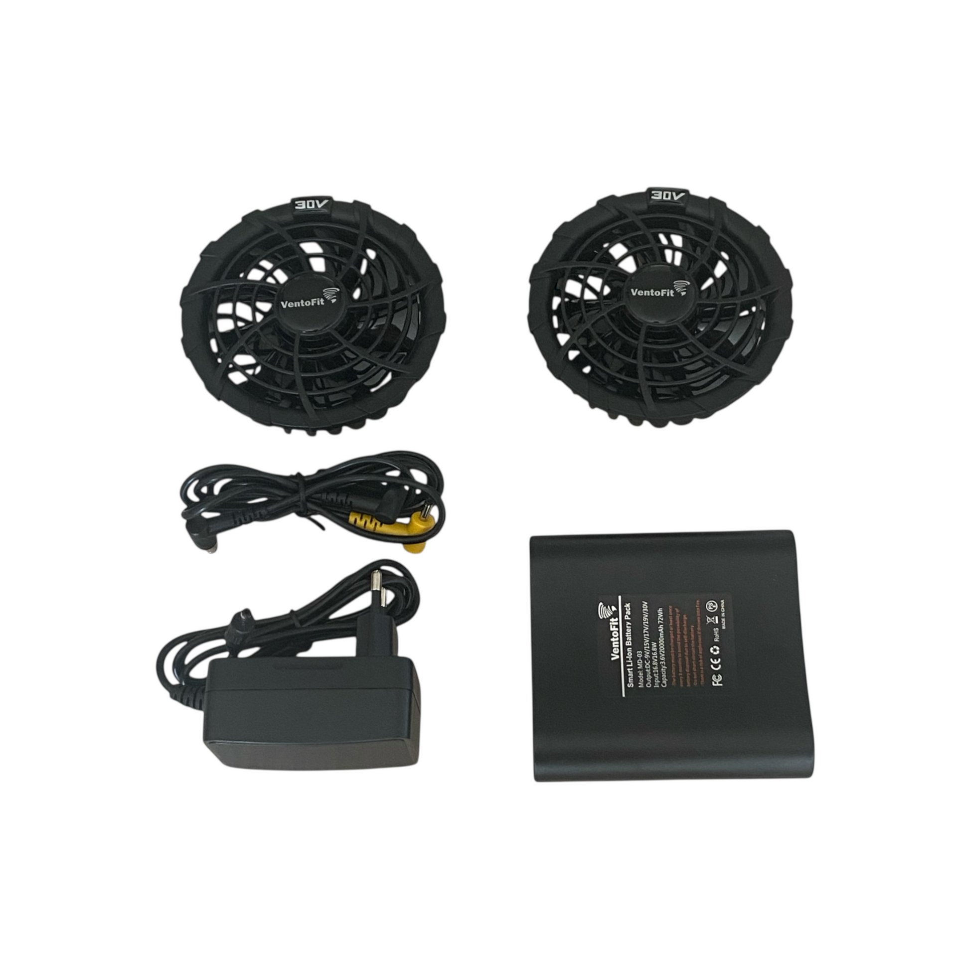 The fans circulate air inside the garment, evaporating sweat and helping to lower body temperature.